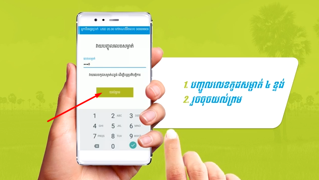 សូមបញ្ចូលលេខសម្ងាត់របស់អ្នកចំនួន 4 ខ្ទង់ ចុចលើពាក្យយល់ “ព្រម” ការផ្ទេរប្រាក់របស់អ្នកទទទួលបានជោគជ័យ។